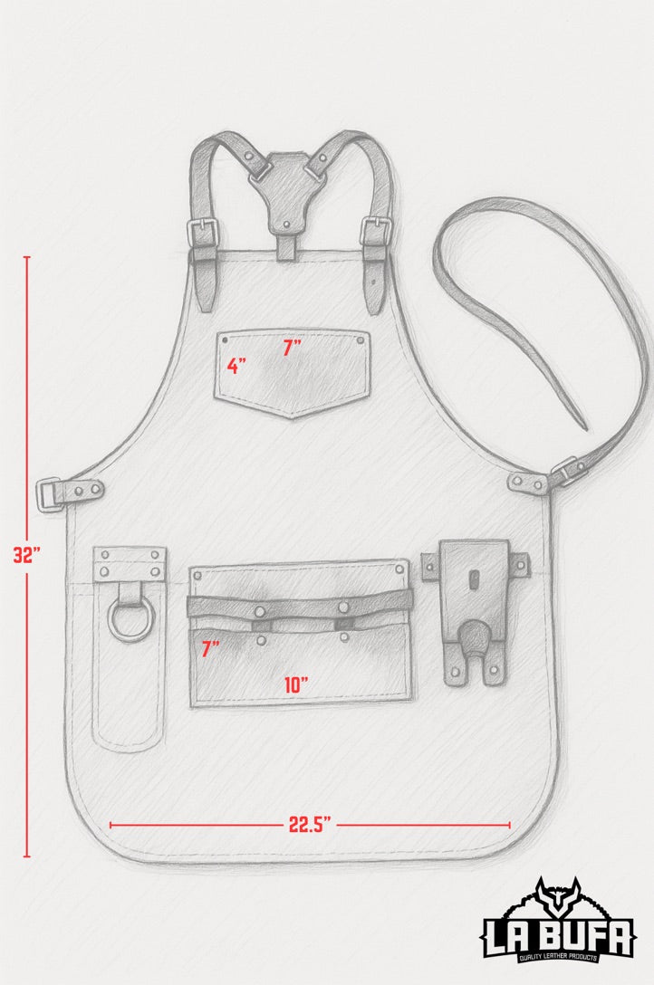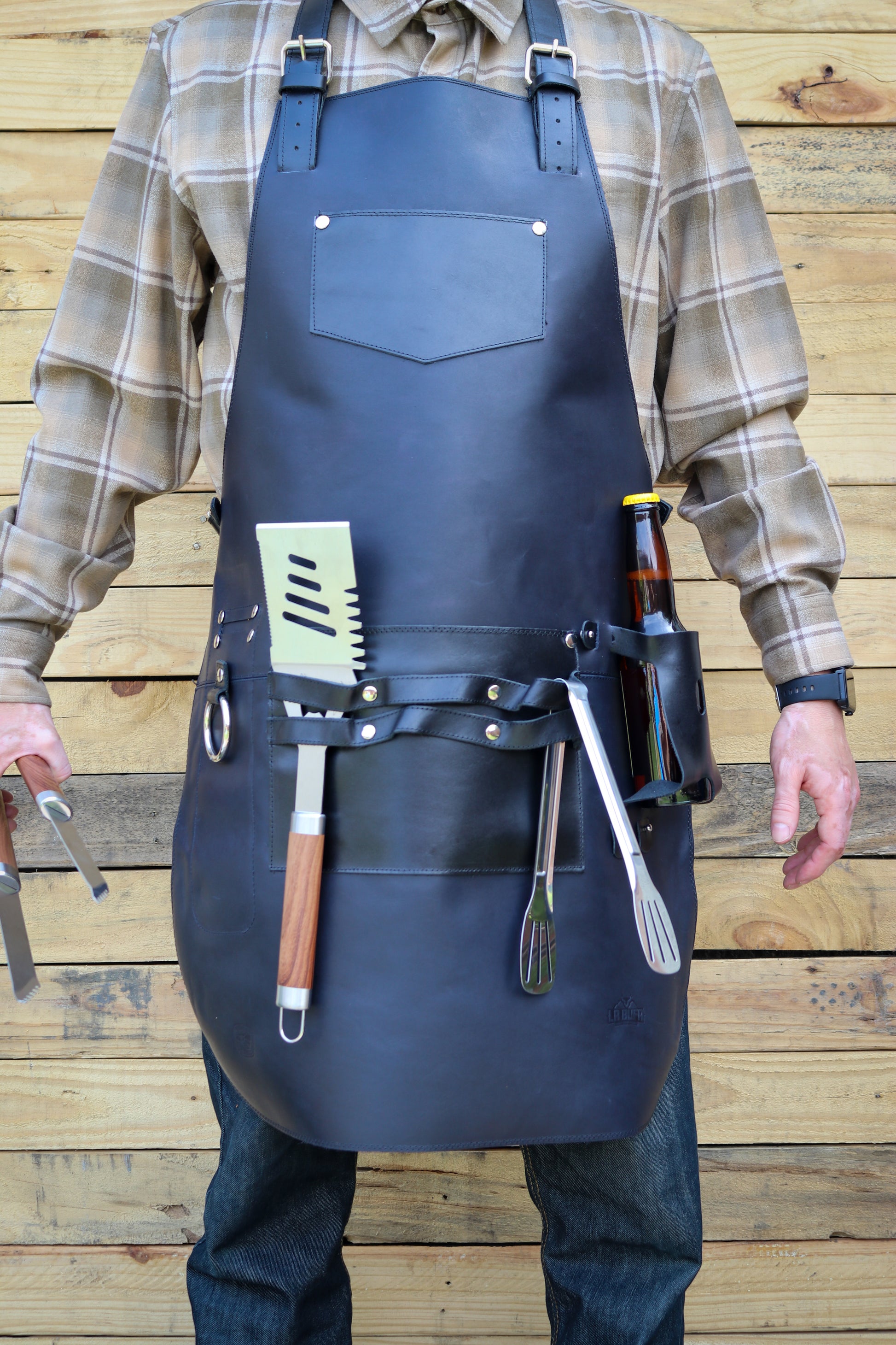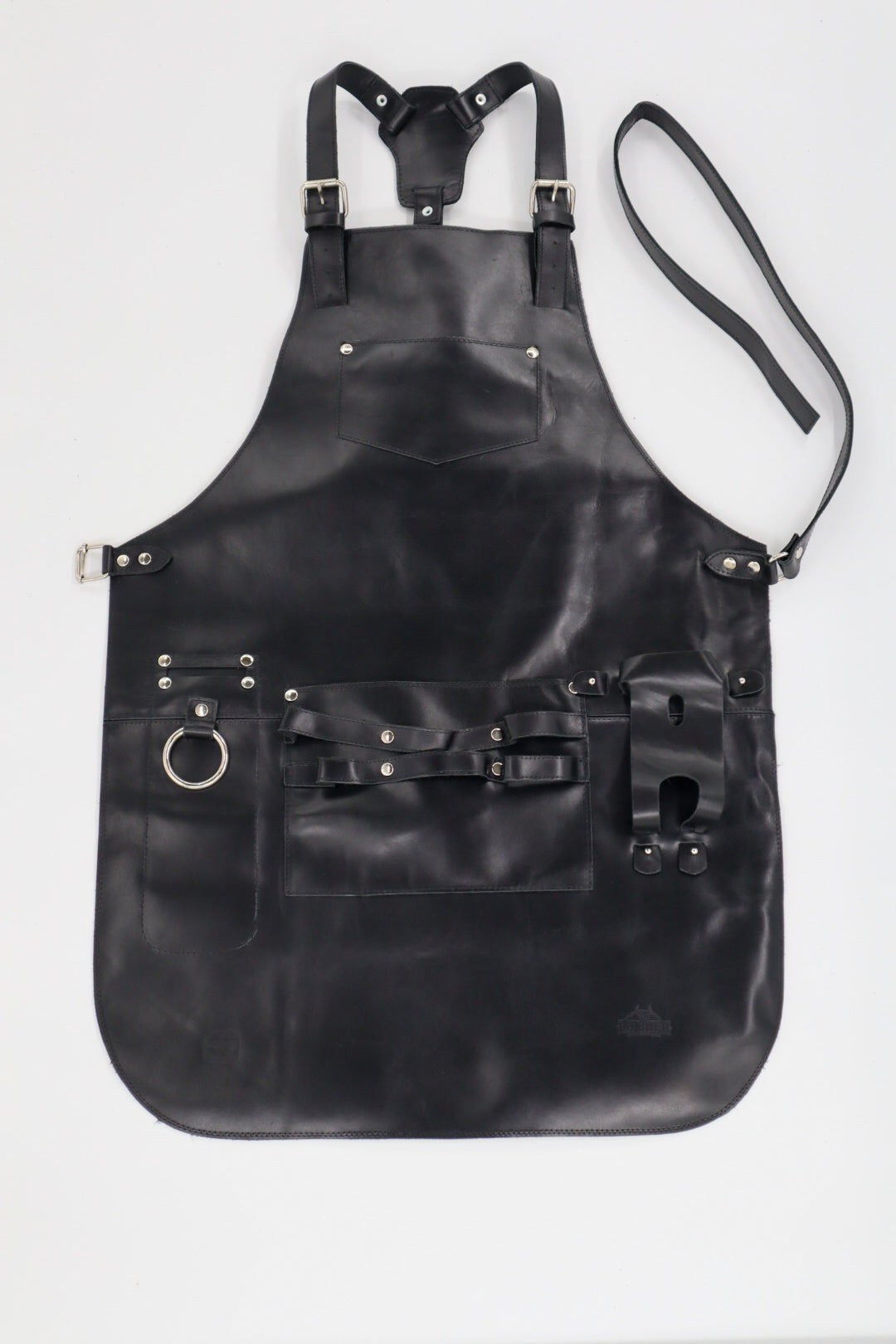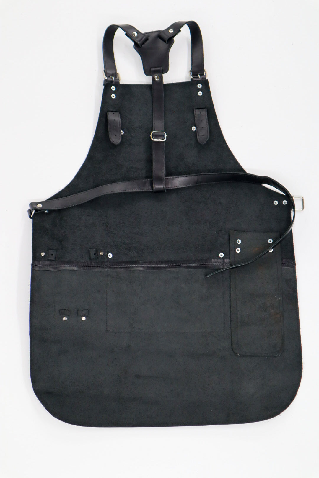 Inspired by the blacksmith’s craft, El Herrero is a striking all-black apron made from full-grain leather, built to handle heat, grit, and heavy use. With its clean lines and reinforced design, this apron is ideal for welders, metalworkers, or any maker who commands strength and precision in their workspace.