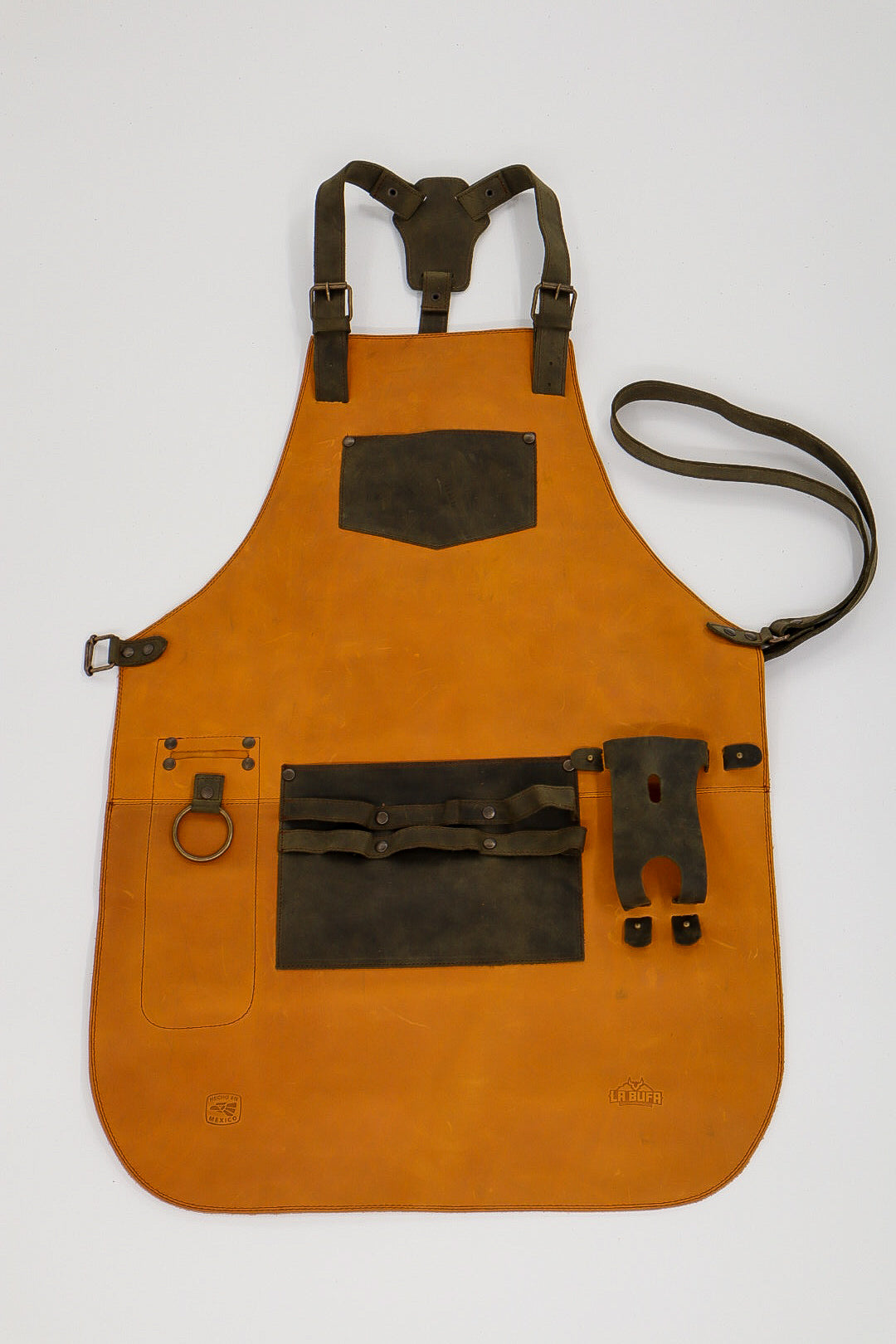 Named after the iconic city of León, Guanajuato — Mexico’s leather capital — this apron represents craftsmanship, character, and pride. León features a warm saddle-brown hue and clean, uninterrupted leather detailing for a bold yet timeless look.