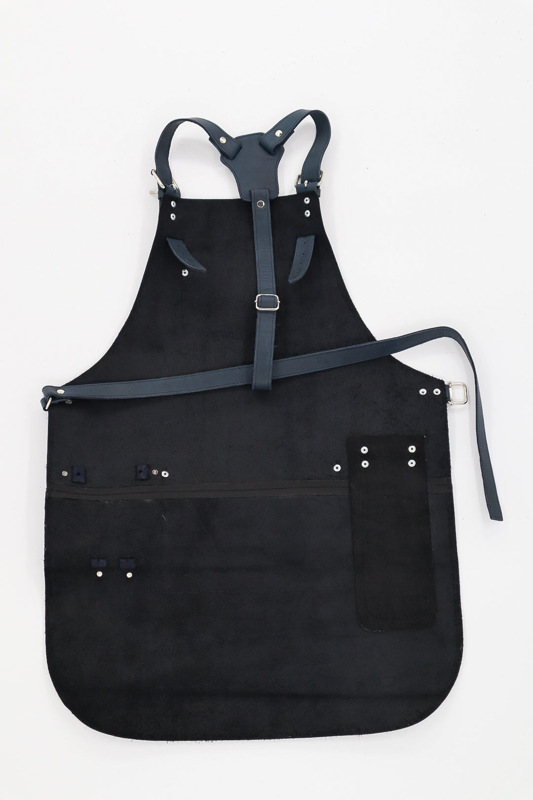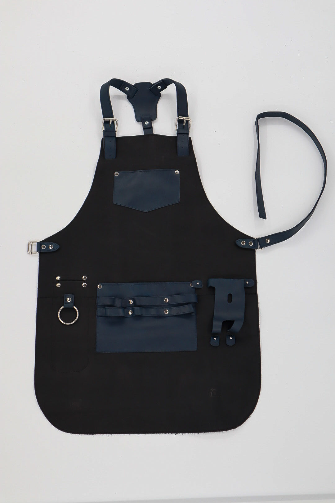 Inspired by the quiet strength of stone and the richness of deep blue earth, Piedra Azul reflects a modern take on tradition. Its sleek matte black base paired with smooth navy blue leather detailing offers a bold and versatile look, perfect for any creative trade.